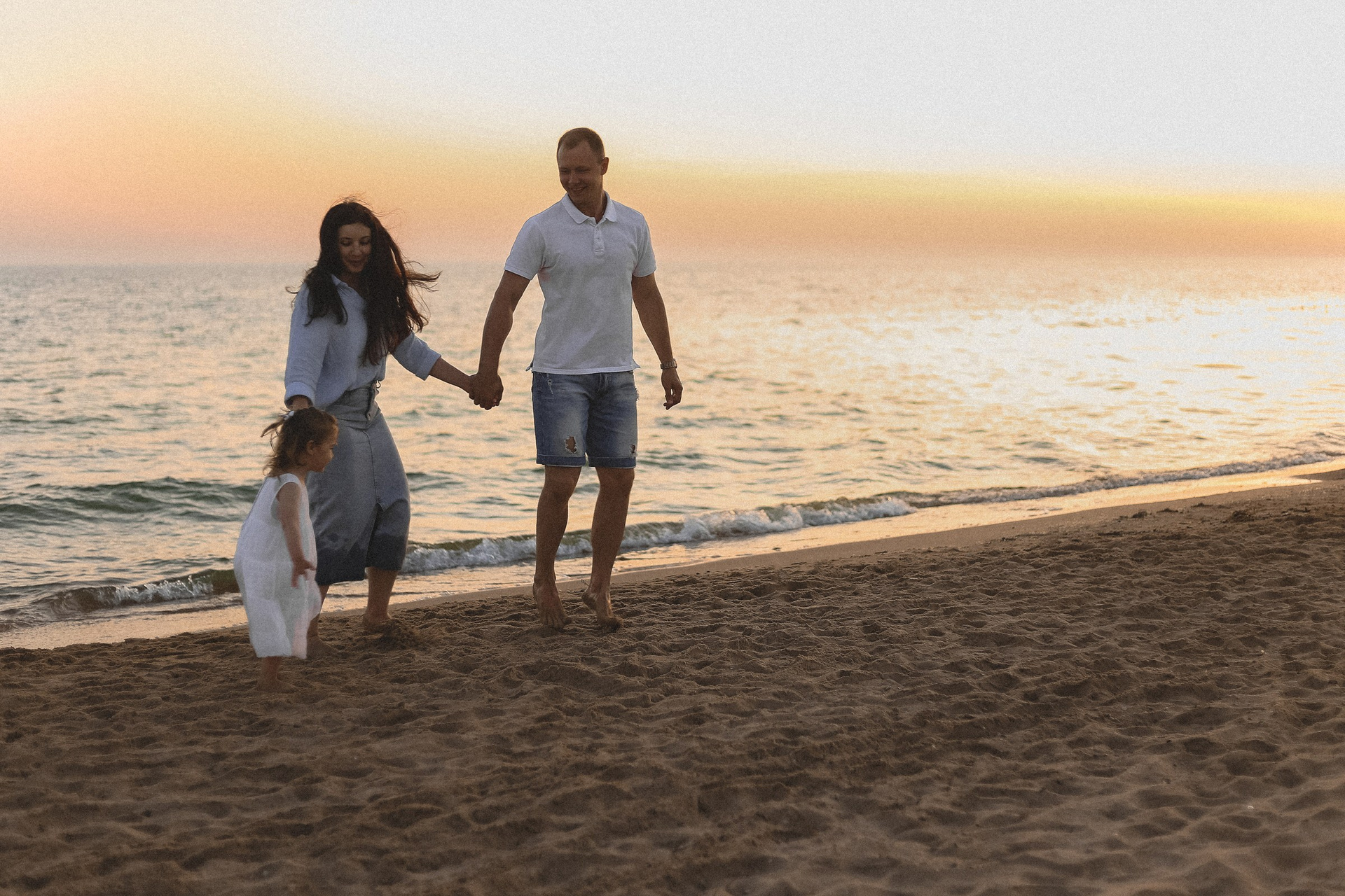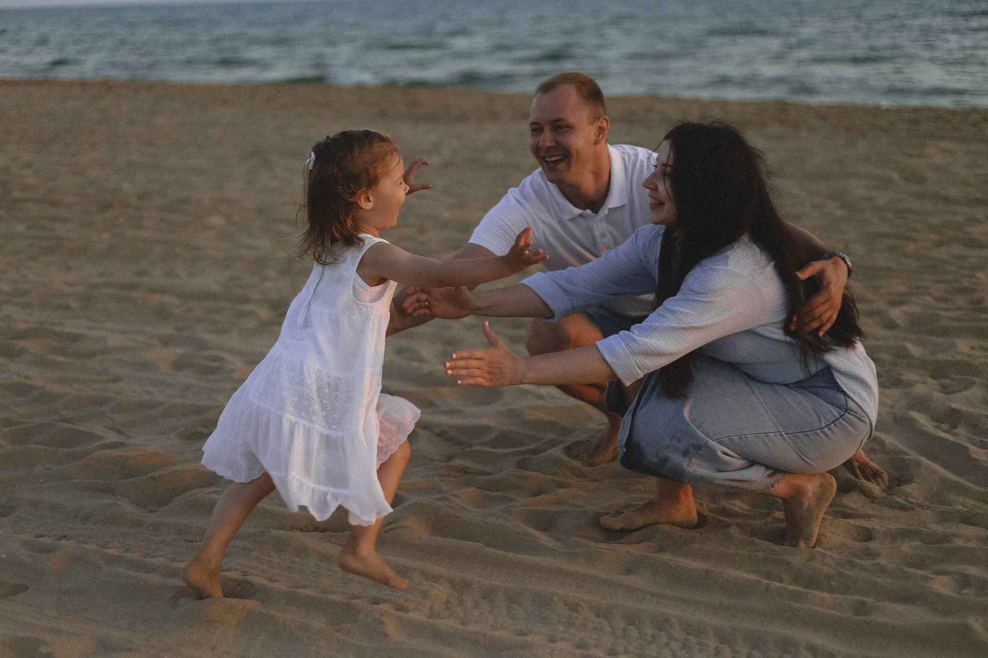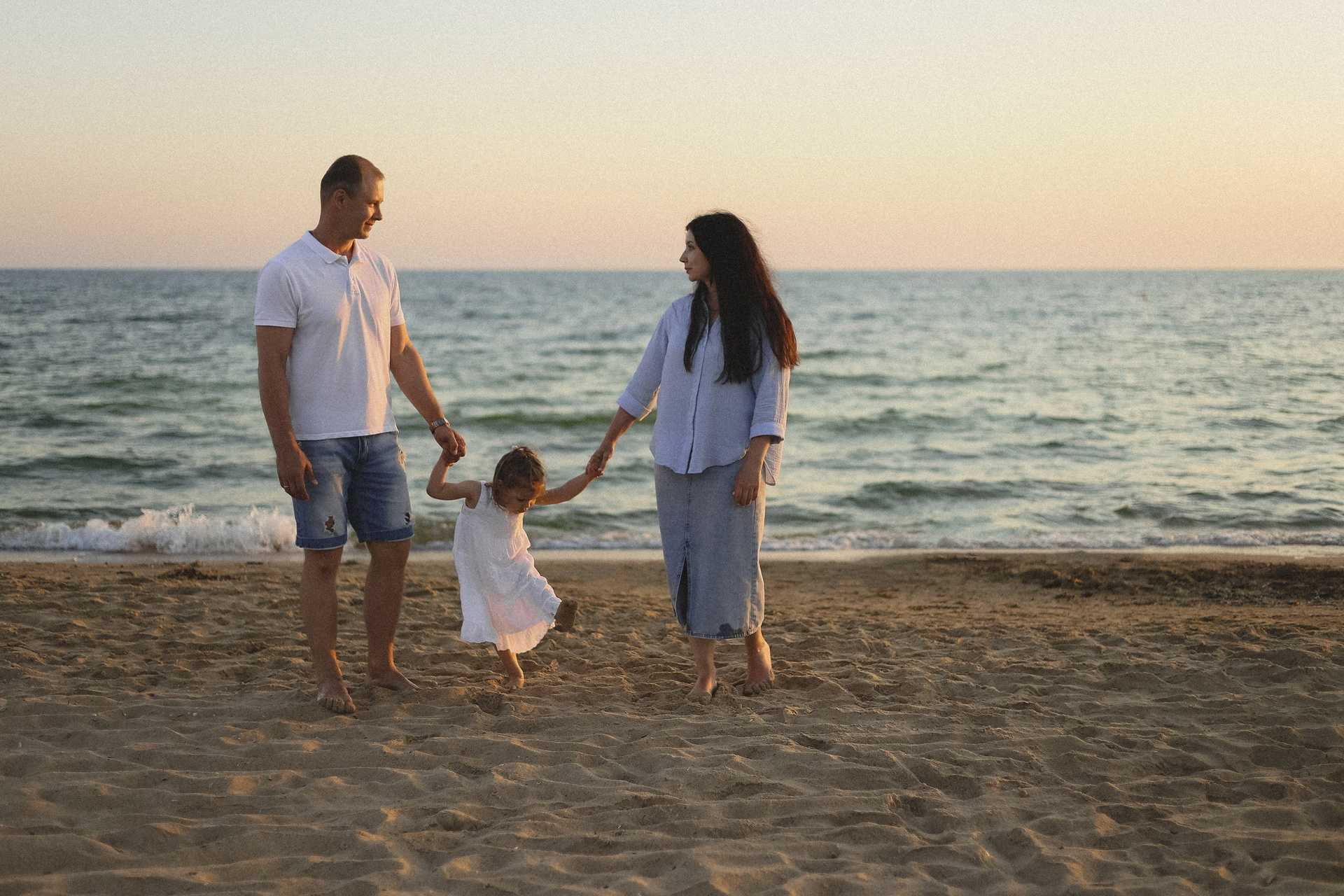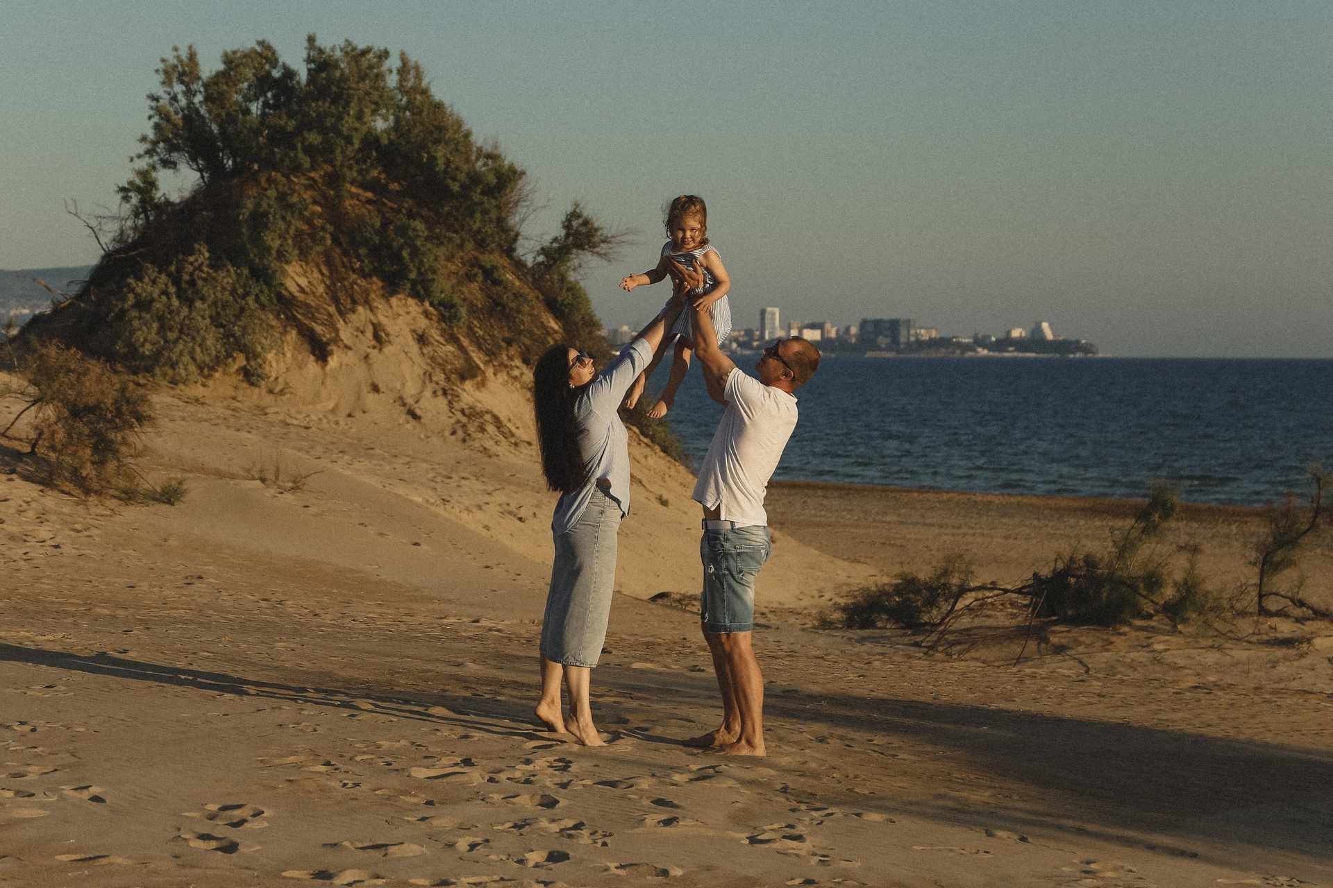 папа, мама и малыш: дюны и море