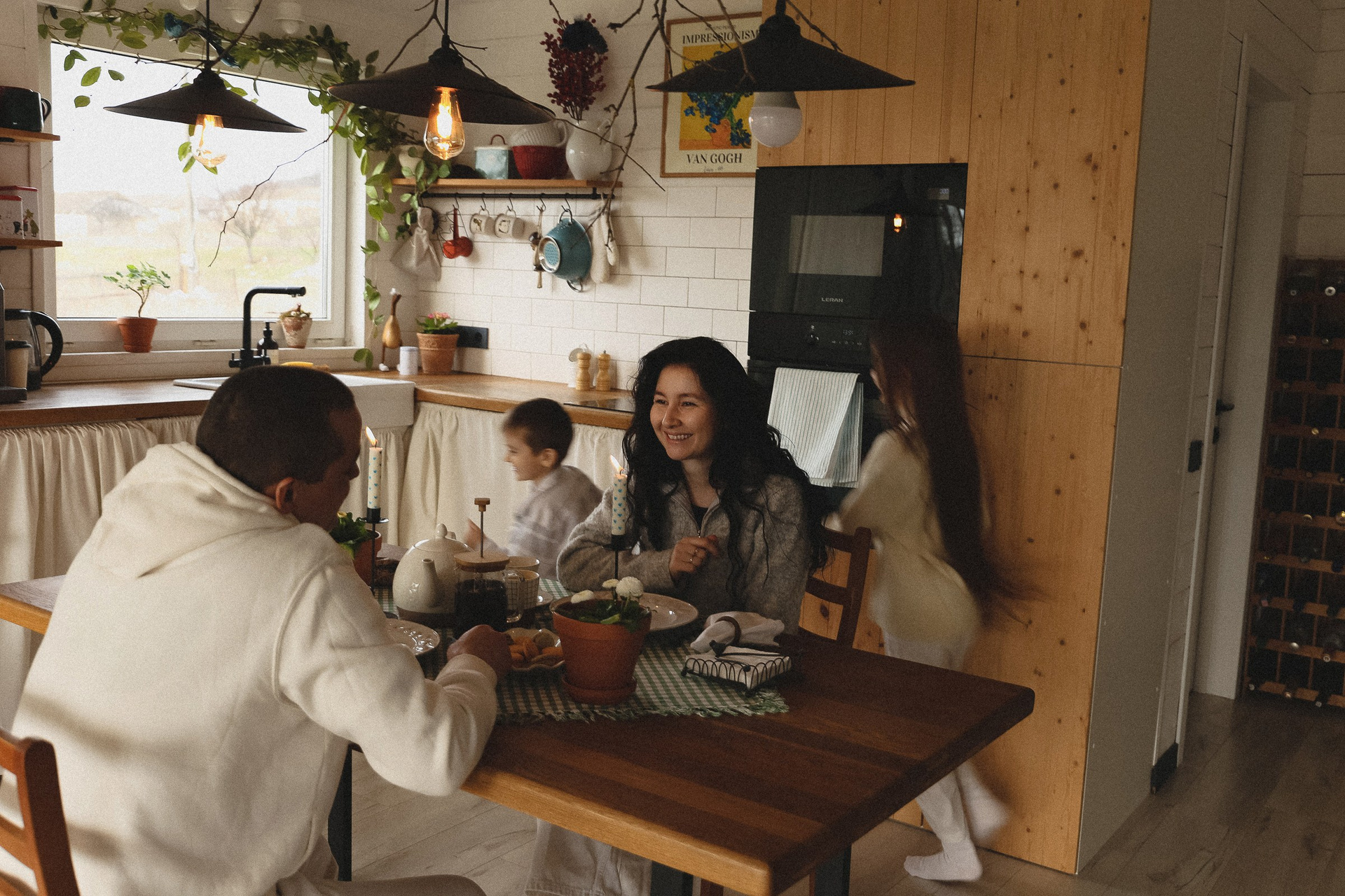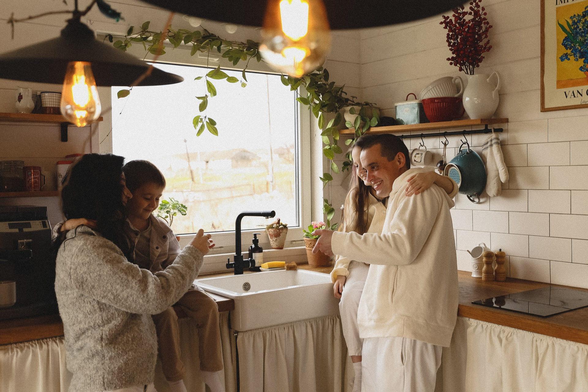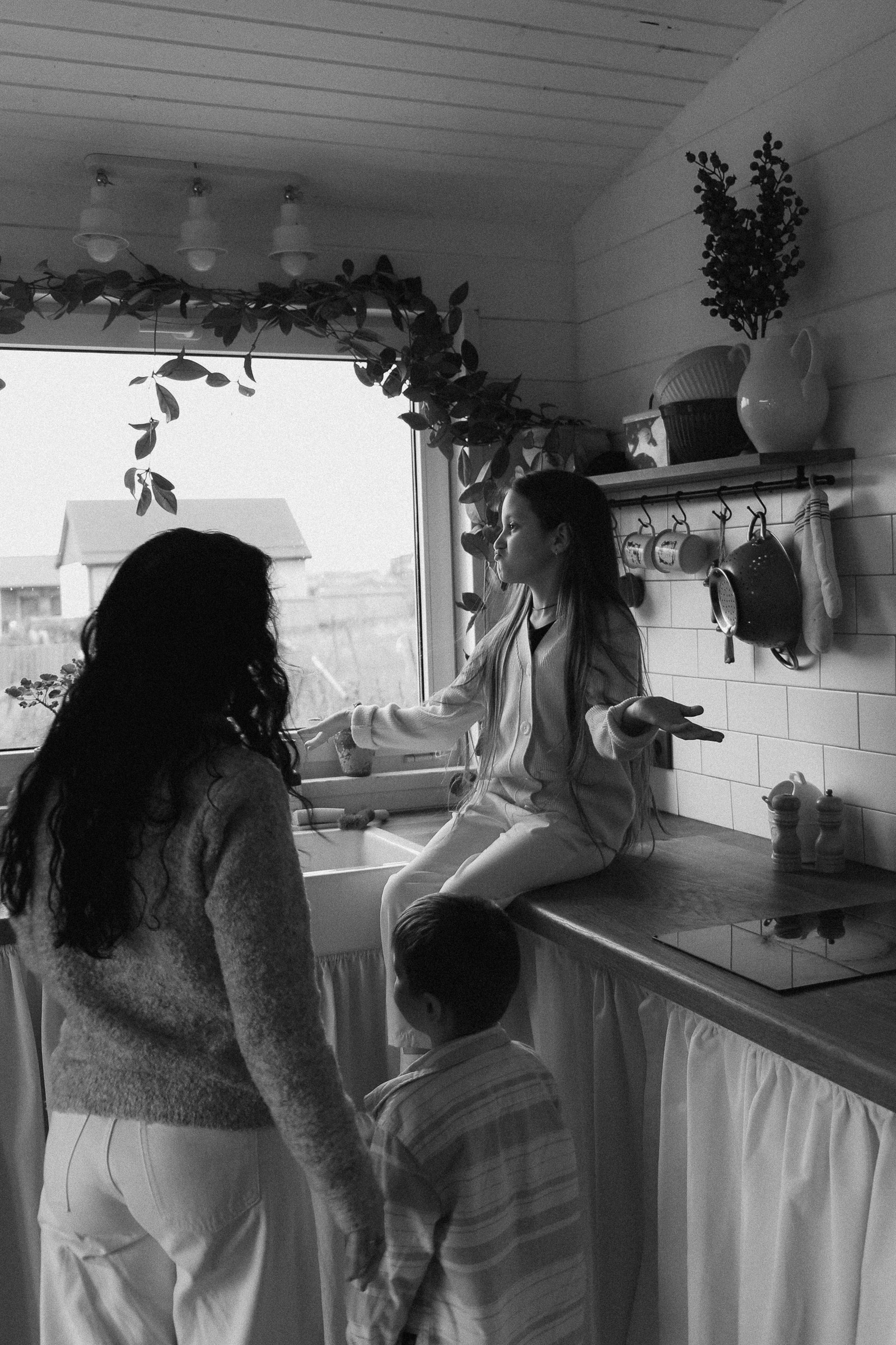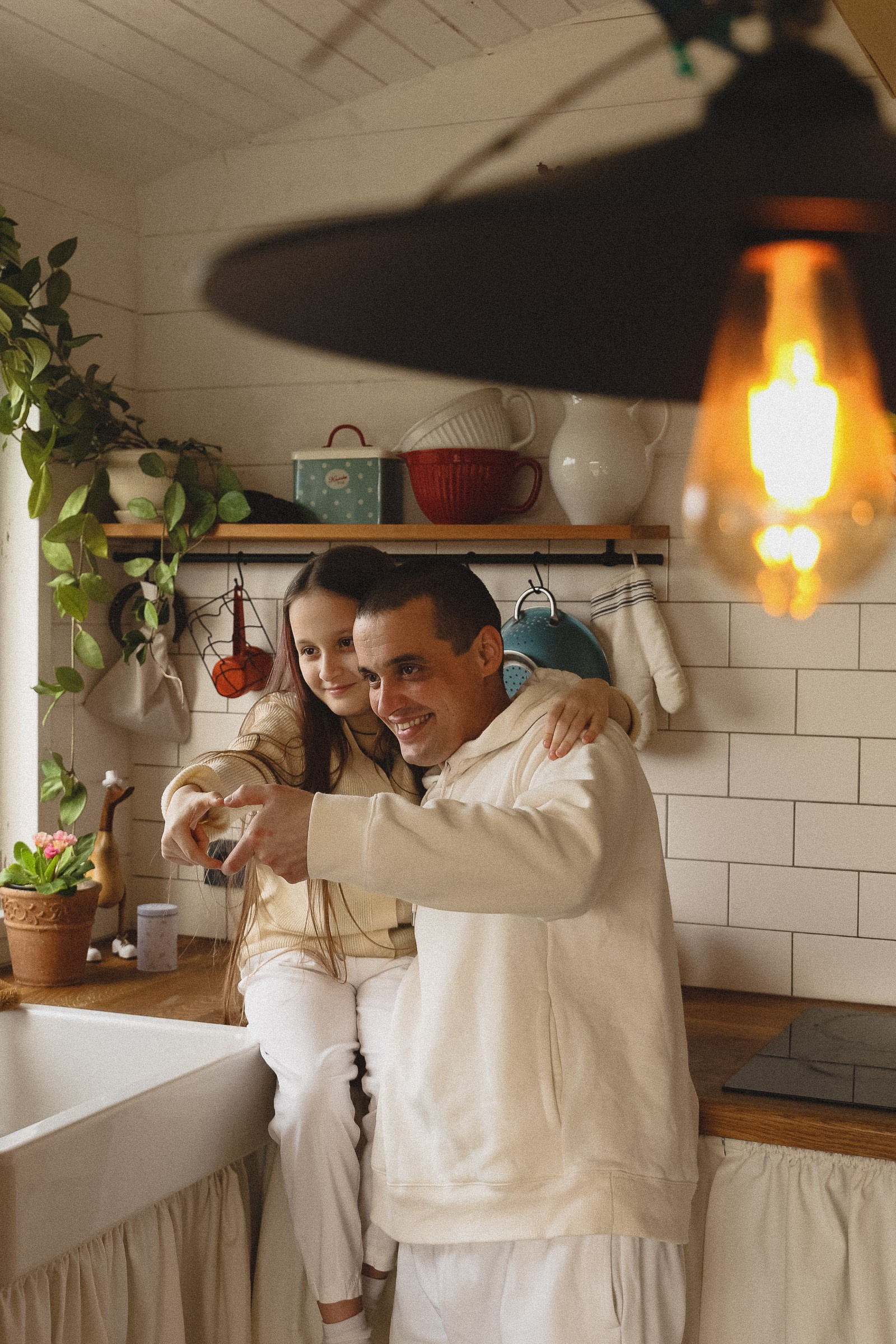 папа, мама и дочь: закат на песчаном пляже